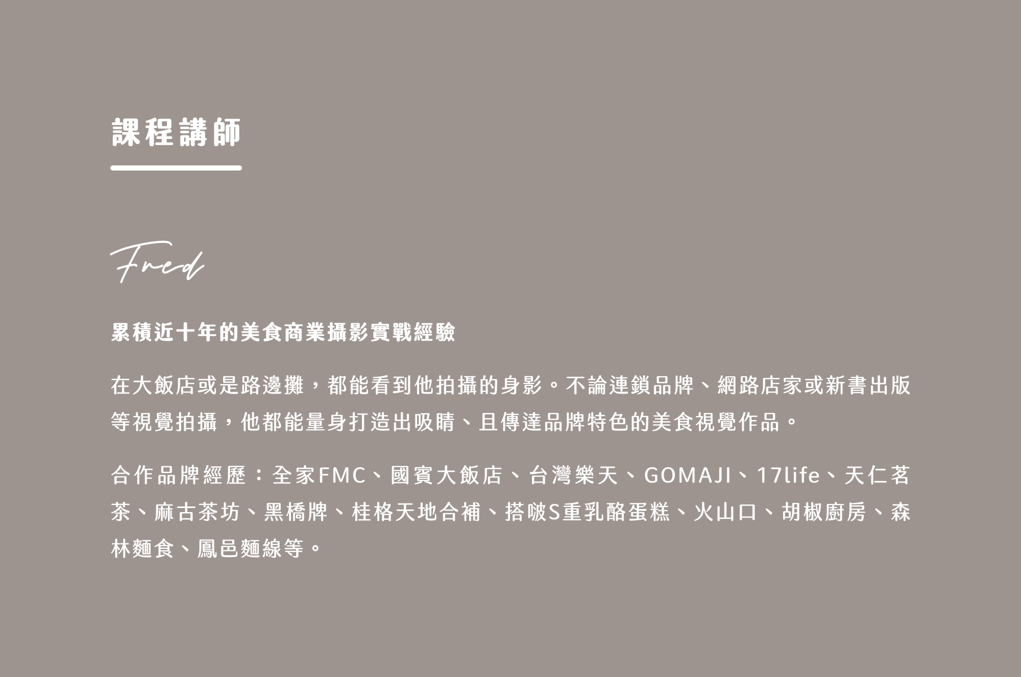 *學員現場練拍與講師指導時間(約45~60分鐘) *問答討論 |