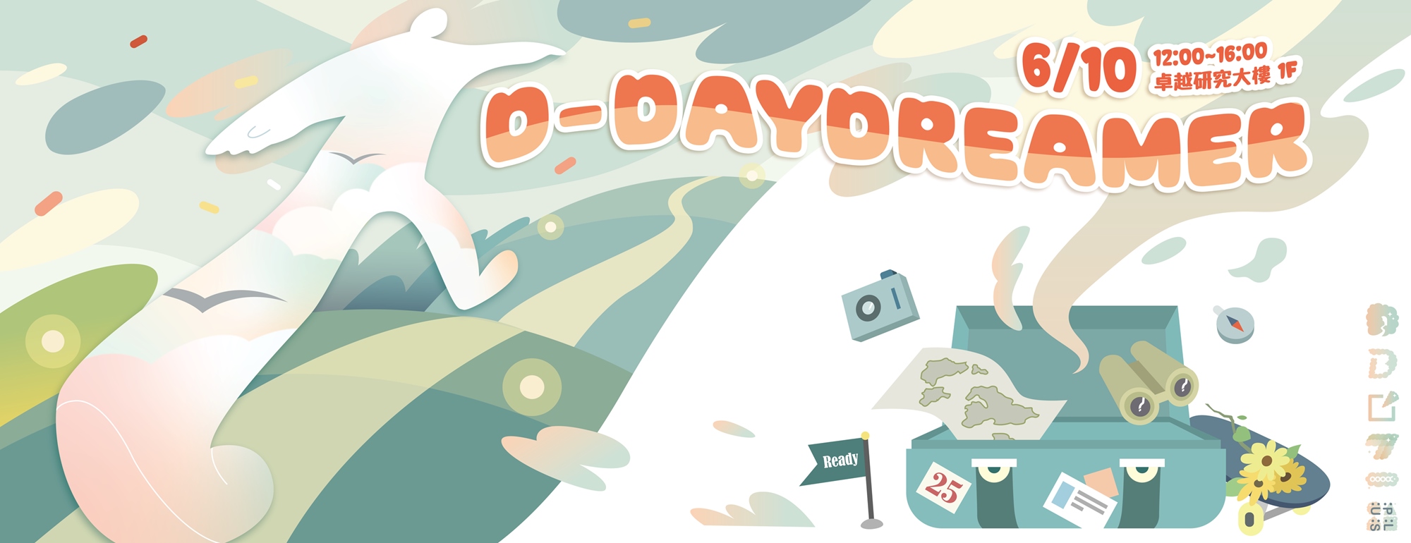 曾 經聽過台大創新設計學院(D-School)嗎? D-School在臺大成立第八年,這八年我們推動校內創新與創造能力的教育,培養學生創新思考、批判思考、解決問題,以及跨領域的創新設計與創造實作之能力。 如果對於課程有好奇? 或是想知道學生在這裡發生哪些有趣專案,都可以透過本次展覽來一窺究竟~☁️D-DAYDREAMER邀請您一起來開啟自己的白日夢冒險之旅☁️