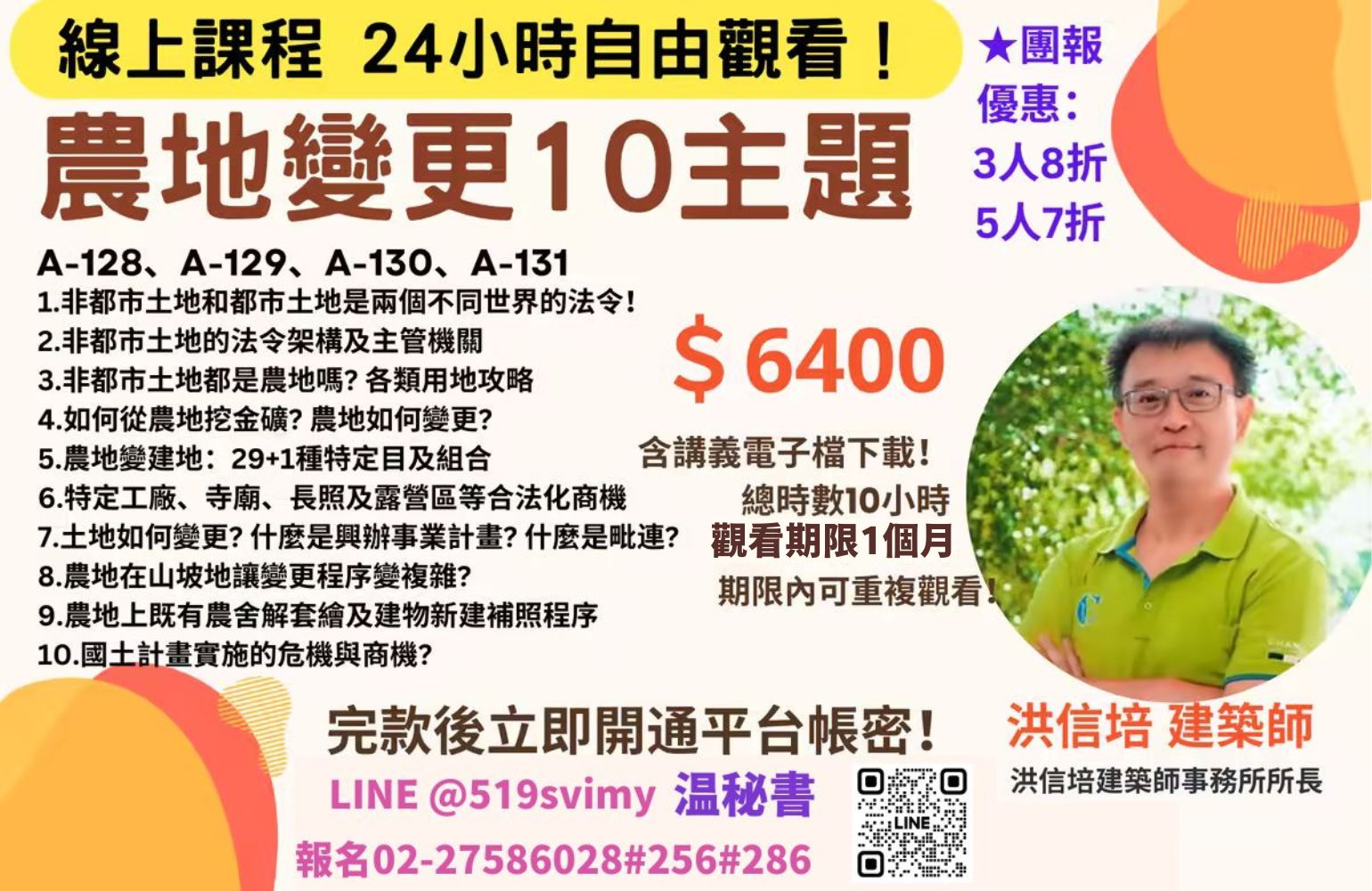 【線上課程】農地變更10主題,線上價6400元!完款當天立即開通!