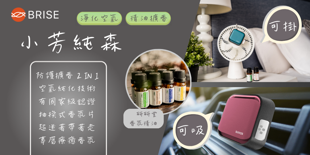 BRISE 與研研堂國際香氛師 Rita,聯合打造四款精油,"小芳純森"先將容易影響嗅覺的細菌、異味分子分解淨化,讓精油分子能與純淨空氣結合,散發最純淨的植物精油香氛。