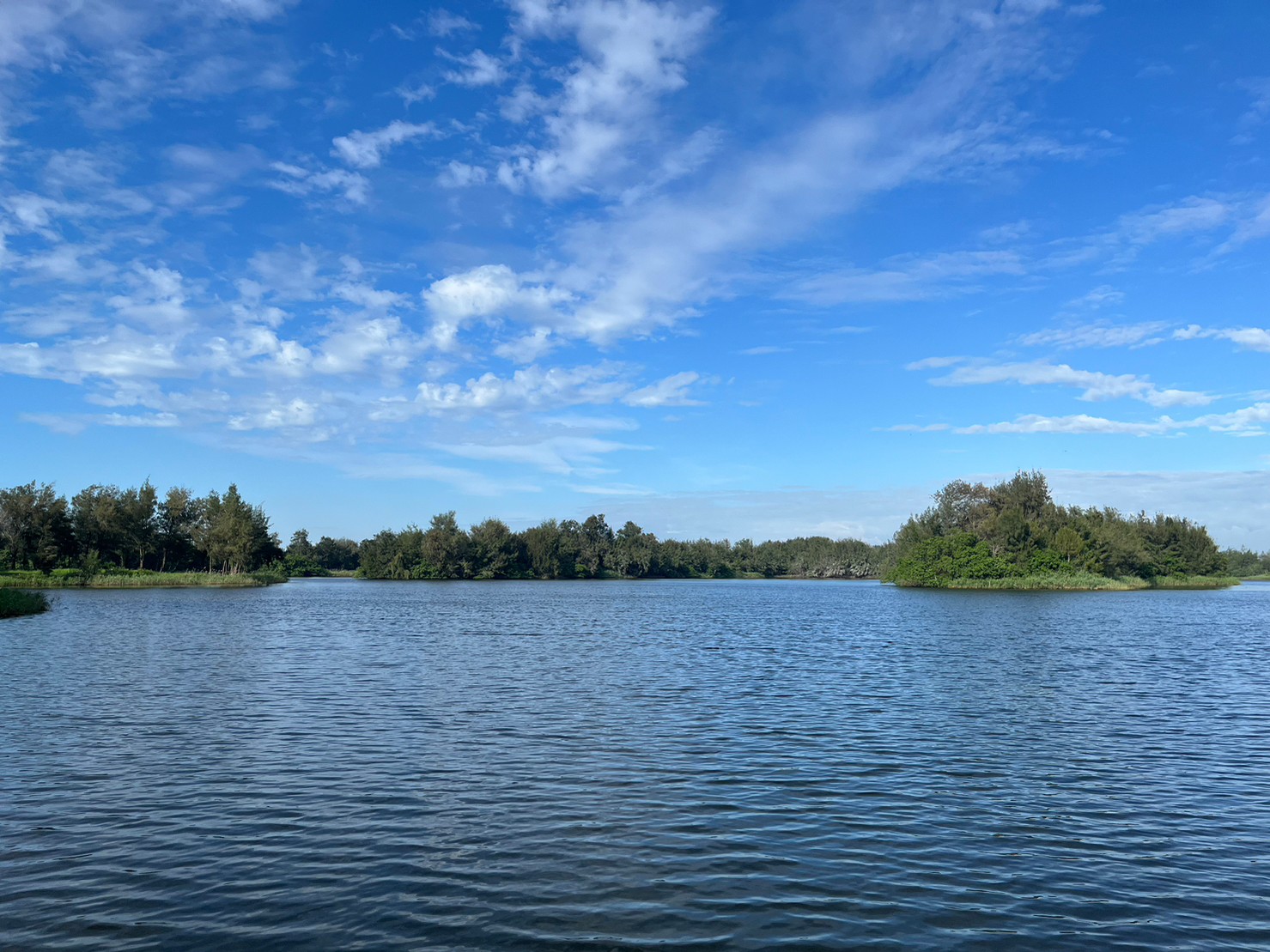 有「雲林版小日月潭」美稱的宜梧滯洪池,總面積達100公頃,是雲林最具規模的滯洪池,有著靜謐優美湖景,茂密林帶孕育出豐富生態,吸引電影《大佛普拉斯》前來取景,成為打卡夯點。