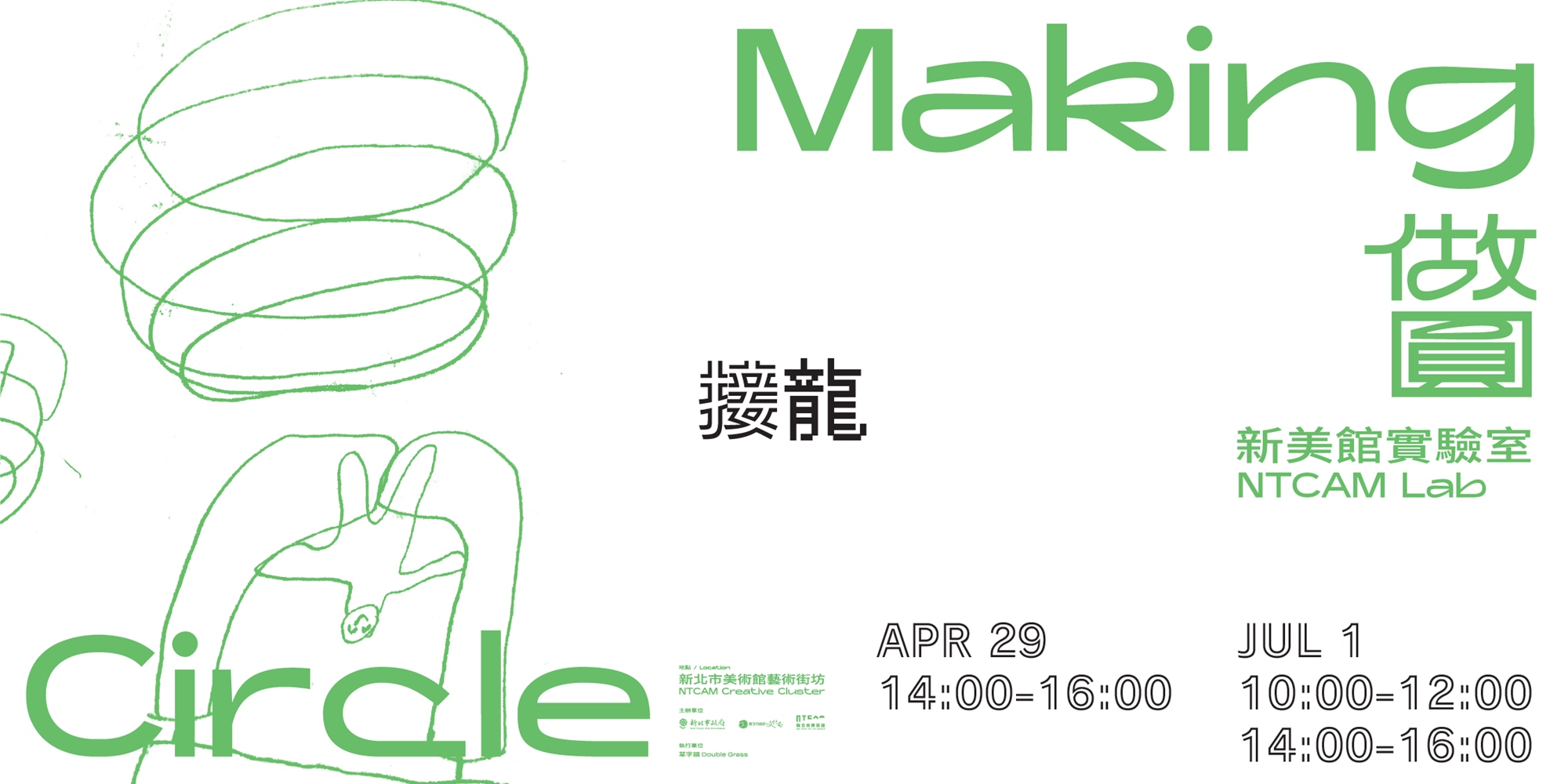 以「做圓 making circle」為新美館實驗室進駐主題,邀請包含產品設計師、圖像創作者、織品設計師、花藝師、平面設計師、攝影師、食物設計師、導演、空間設計師、藝術家、音樂製作人、服務設計師、新媒體藝術家、肢體工作者等跨域創作者為圓心,以新北特色為距畫圓,讓進駐創作者及民眾之間的交會處,成為藝術聚落重心,發掘並放大每位創作者、每個領域、學域間的交錯地帶,聚集、互動、交互影響,共組新北圈。讓我們在新北市美術館透過玩球、工作與玩圓,一起互相學習匯聚成圓, Let’s join NTCAM circle!