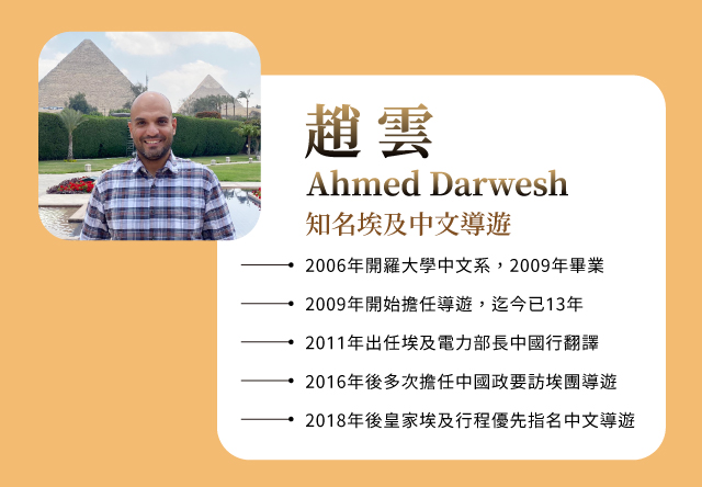國內頂奢旅遊領導品牌「皇家國際運通旅行社」,即將於夏季舉辦一系列文化旅遊講座,第一砲正是皇家夙負盛名的「埃及」! 此次特地邀請中文系畢業的埃及頂尖導遊,趙雲先生主講,一口流利國語,已令皇家貴賓驚喜,豐富學養,除旅遊知識外還對象形字別有研究,歷史人文解說更總令貴賓們如沐春風,曾因此獲選為中國前總理李克強訪埃時的陪同導遊,深厚功力不在話下。