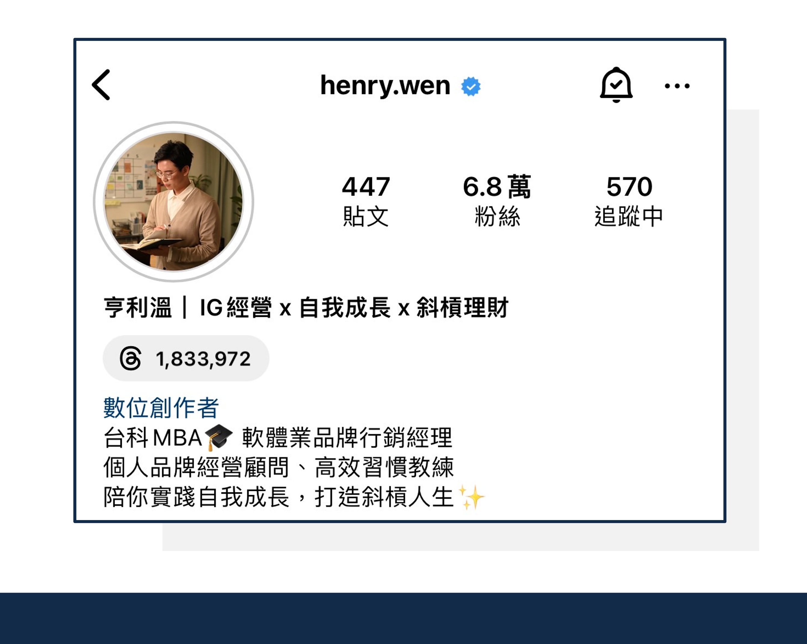 我的IG帳號:亨利溫|IG 經營 x 自我成長 x 斜槓理財