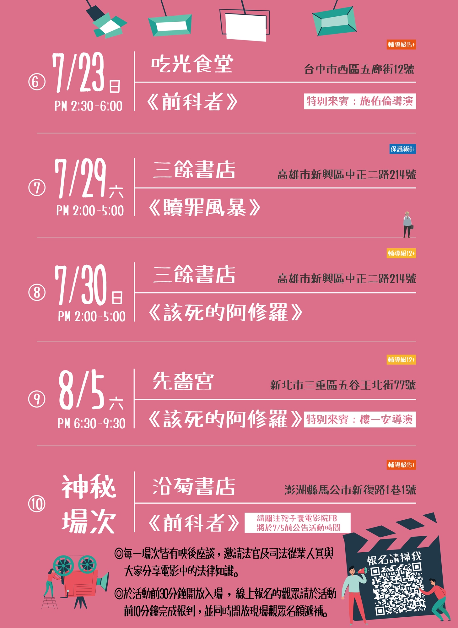 7/23(日)|14 : 30 - 18 : 00|與談人:臺中地院 賴恭利 法官/ 施佑倫 導演