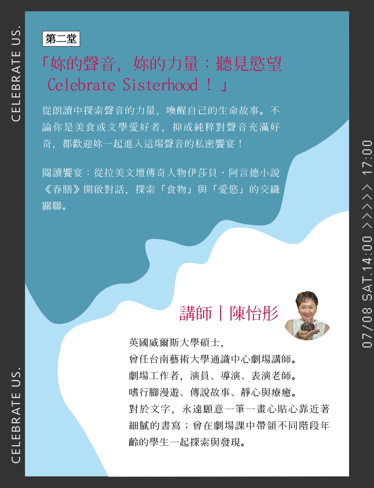在空間中自在分享,找回聲音與力量,讚頌我們走過的每一步精彩旅程!Celebrate us!