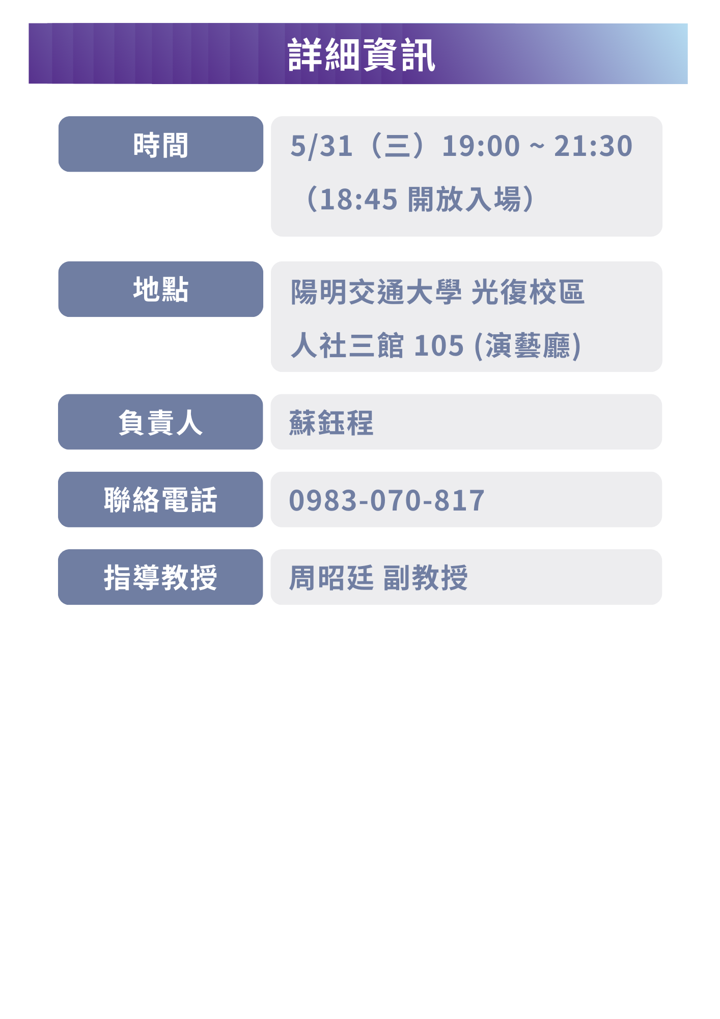 台灣新竹市東區大學路 1001 號人社三館105(演藝廳)