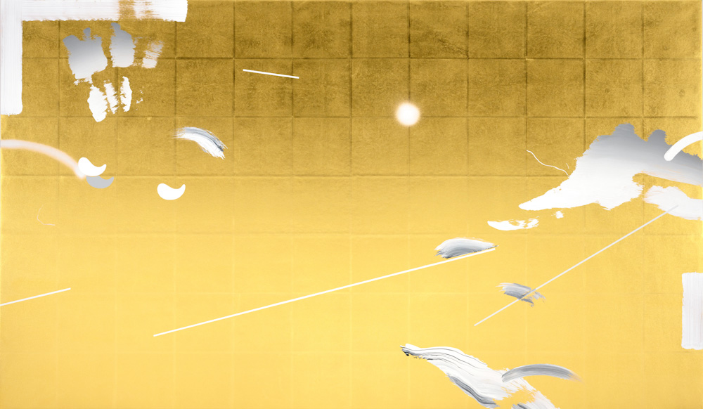 品川亮,無題,2023,壓克力顏料、金箔、牛膠/紙,87.5 x 150 cm