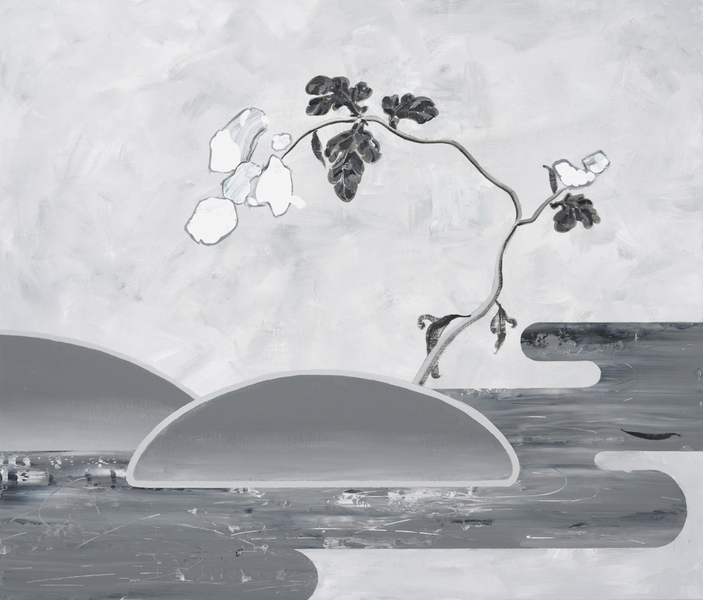 品川亮,菊花流水圖,2023,壓克力顏料/畫布,75 x 87.5 cm