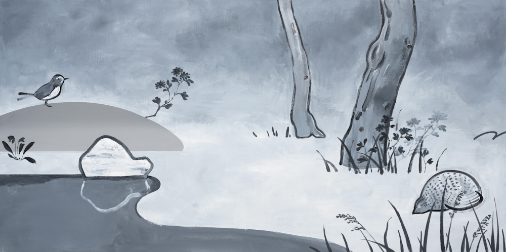 品川亮表示,近來他對作品中的「時間」和「敘事」感興趣,因此,他畫鳥類並將其融入想像的背景主題構圖當中,這是他過去未曾奢望過的想法,當他嘗試之後發現「深度」從畫面顯現出來之外,上色之後又呈現不同的感受,因而產生繪畫的樂趣。除此之外,他也正自我挑戰「水墨」的極限。日本的水墨始於禪宗僧侶的修行,只有黑、白二色的極限卻發展出豐富的繪畫內涵,品川亮試圖從極限當中挖掘出新的表達方式。