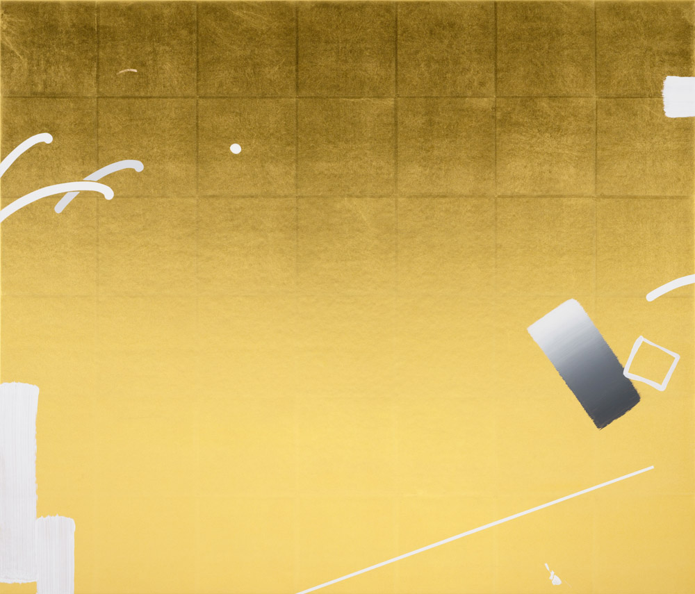 品川亮,無題,2023,壓克力顏料、金箔、牛膠/紙,75 x 87.5 cm