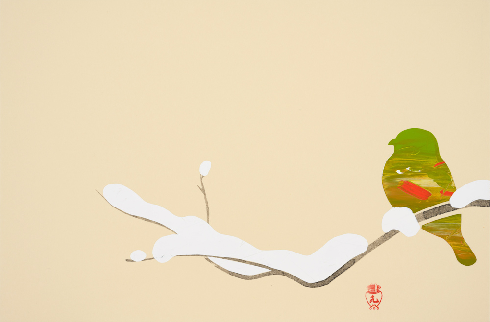 品川亮,小禽圖,2023,墨、壓克力顏料/紙,25 x 37 cm