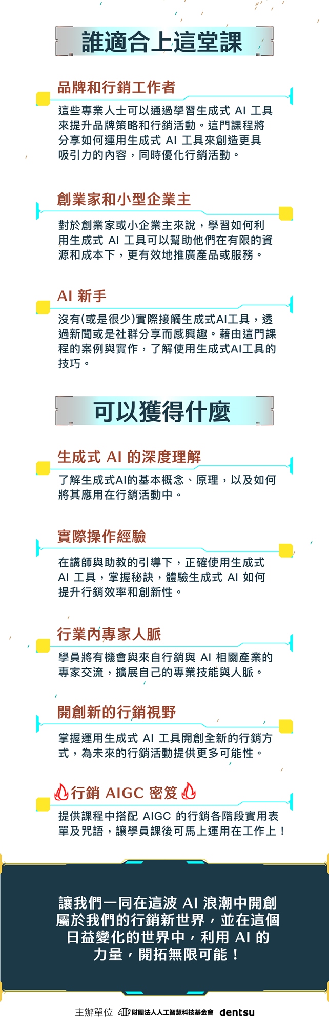 - 本課程報名滿40人即開班,未達40人則針對已報名之學員進行退費,請留意通知。(6/7更新,本次課程已達開課門檻,確認開課!)