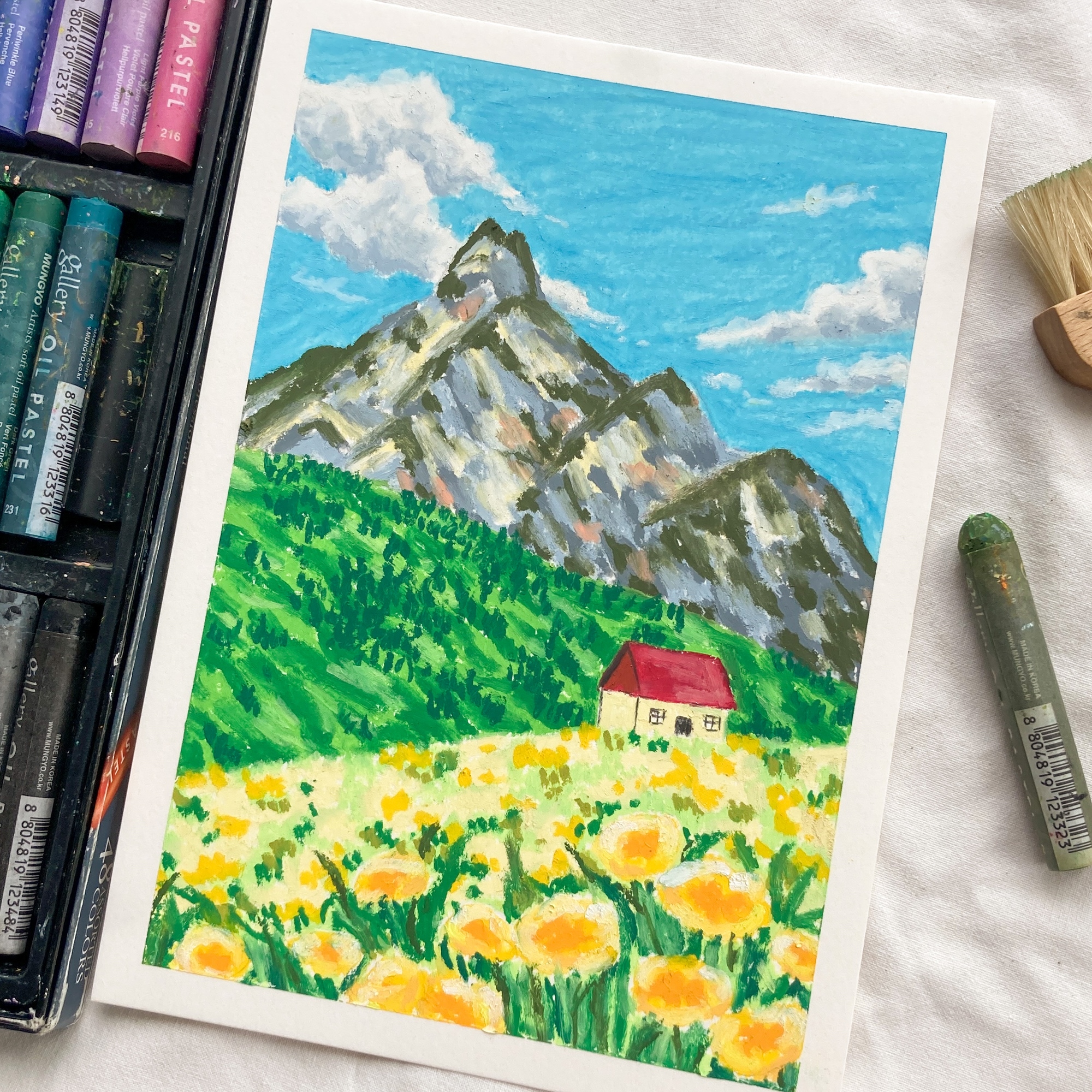 油性粉彩樸質的筆觸、奶油般的質地,可以製造出類似油畫的效果