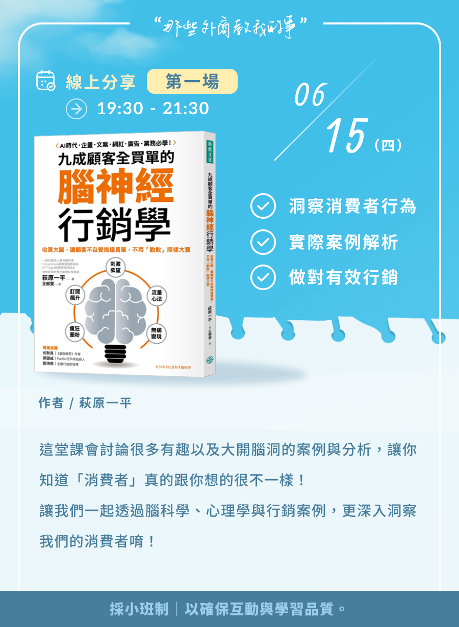 第一場:6/15《9成顧客全買單的腦神經行銷學》