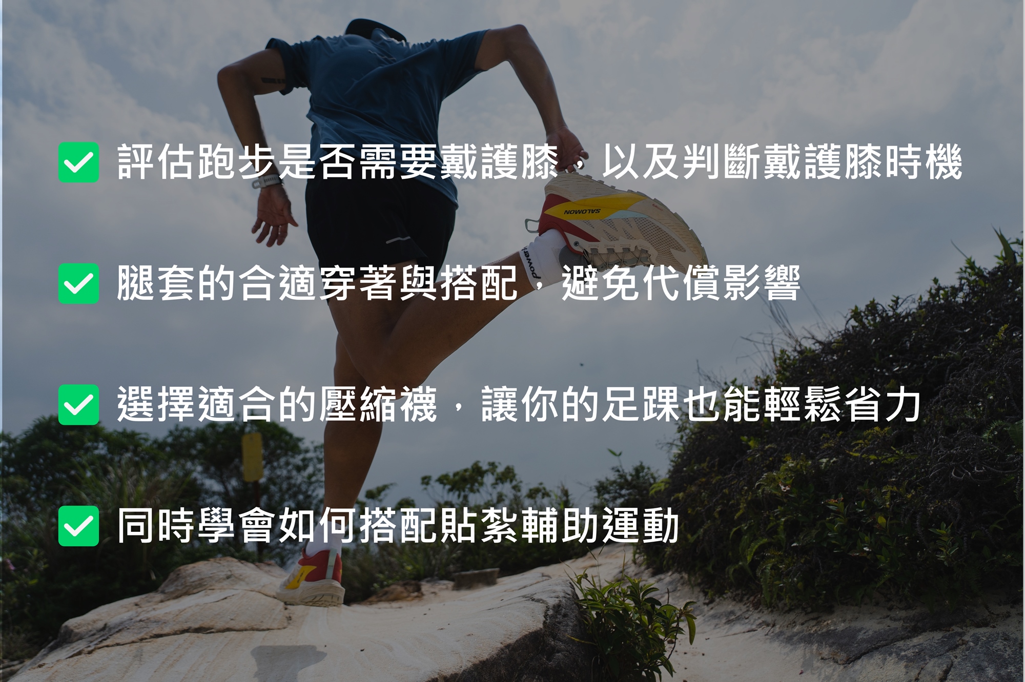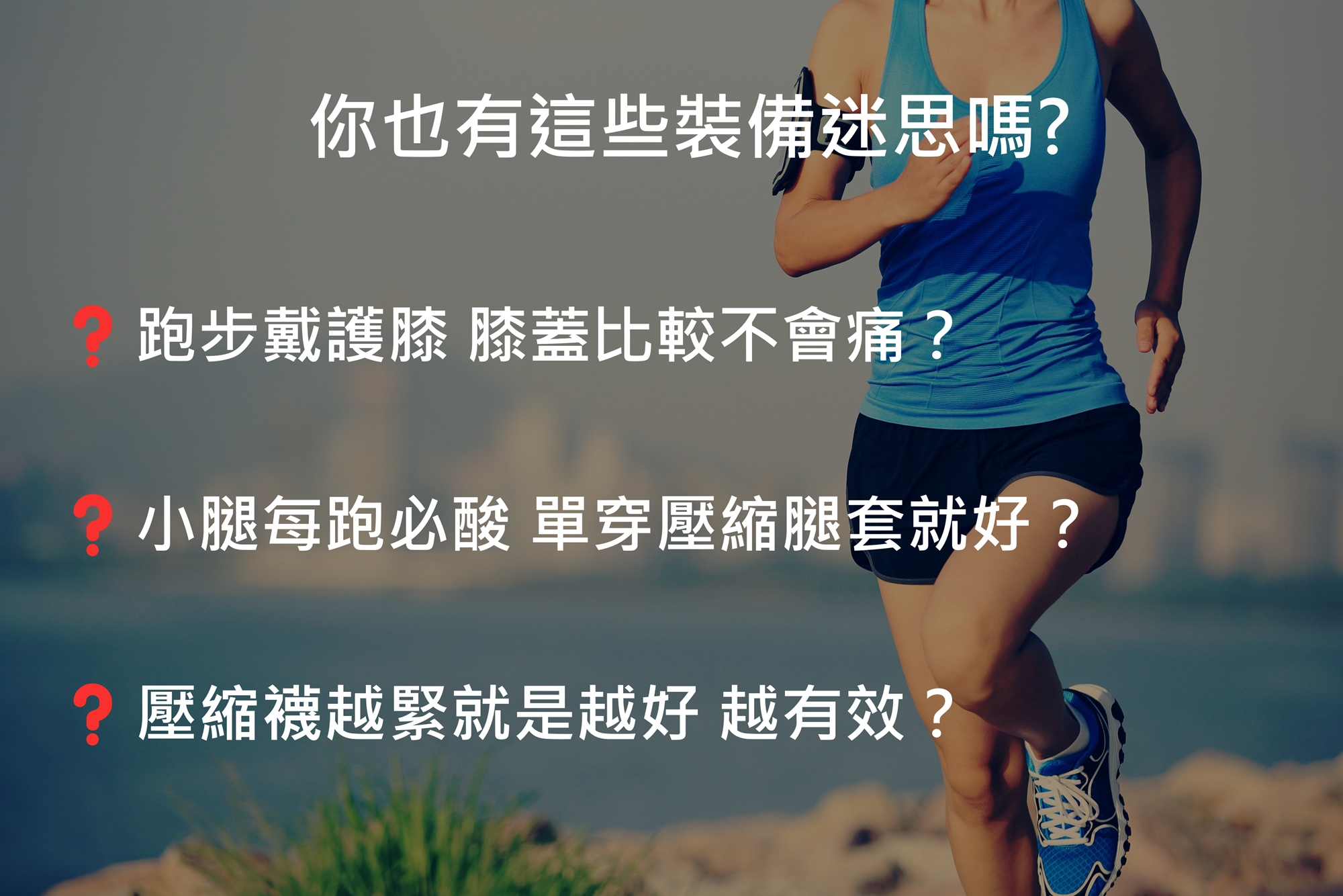 本堂課程將揭開常見的跑步裝備迷思,讓你不再迷失於各種選擇中!課程將會分享跑步到底要不要戴護膝、什麼時候戴才合適,以及壓縮腿套怎麼穿才不會有代償現象,也會分享壓縮襪如何選擇才正確💥 最後也會帶到如何使用肌貼貼紮輔助運動。