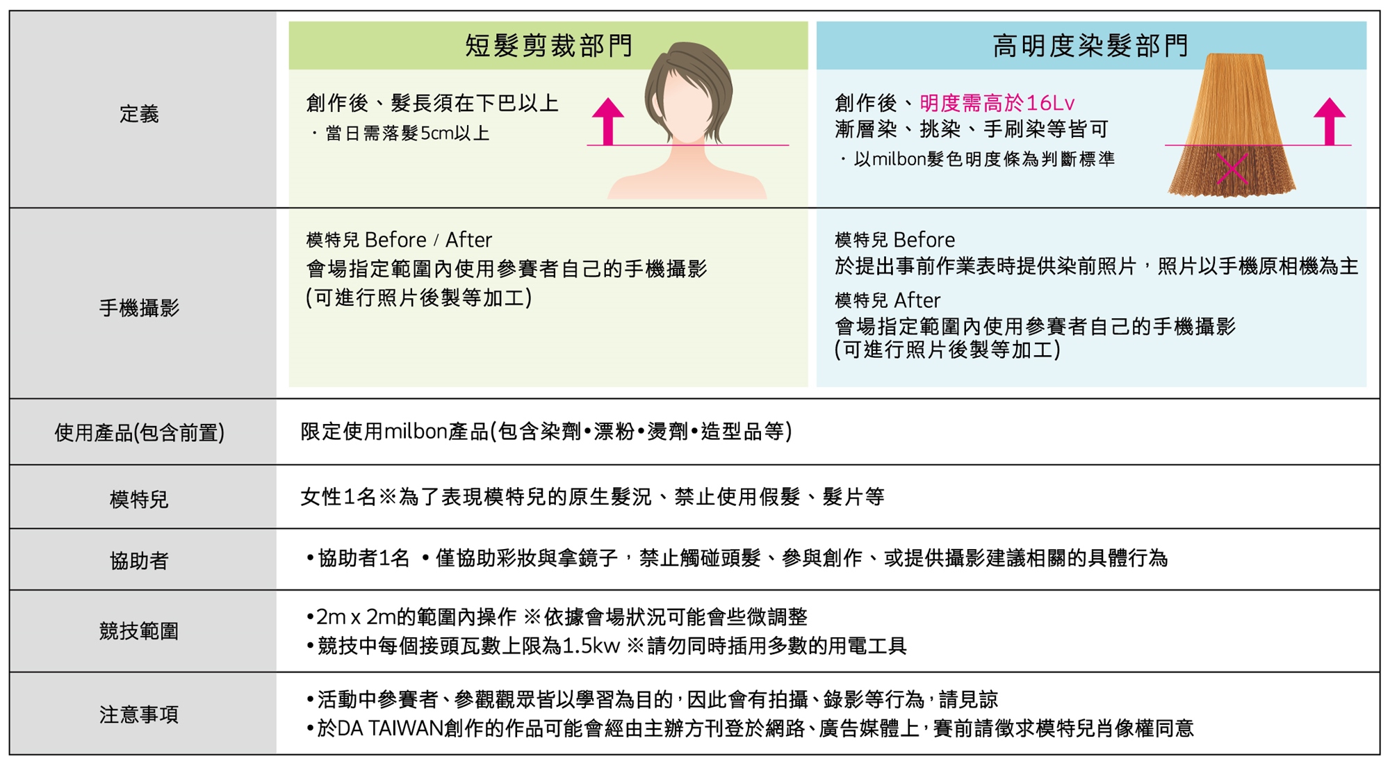 「短髮剪裁部門」及「高明度染髮部門」擇一報名