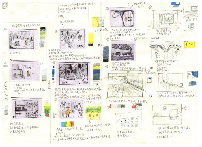 所以展覽會盡量詳細的呈現,《討厭綠色毛毛蟲的王子》與《從前從前火車來到小島》從概念到草圖,分鏡到完稿,我所碰到的困難或猶豫不決之處,那些沒有紀錄在書裡的重要時刻。