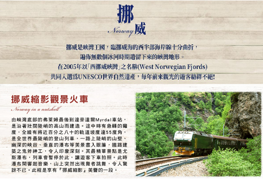沿途欣賞不同國度的自然風光 ~ 千湖、島嶼、峽灣、冰河、高山火車、