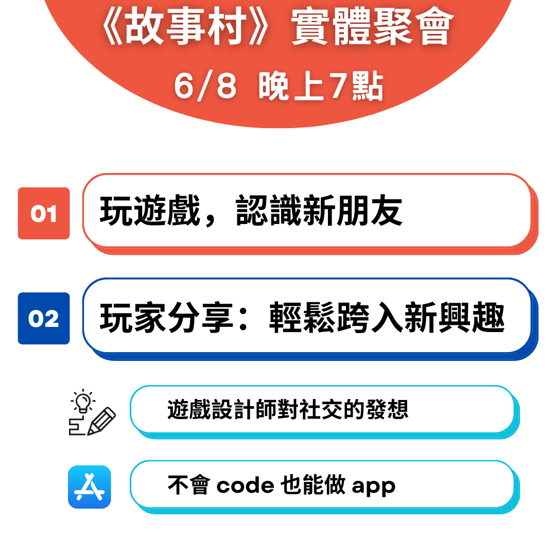 我們是新創《故事村》,勵志於解決「科技冷漠」這個難題,協助大家認識價值觀相似的新朋友,一起做有趣的事情!