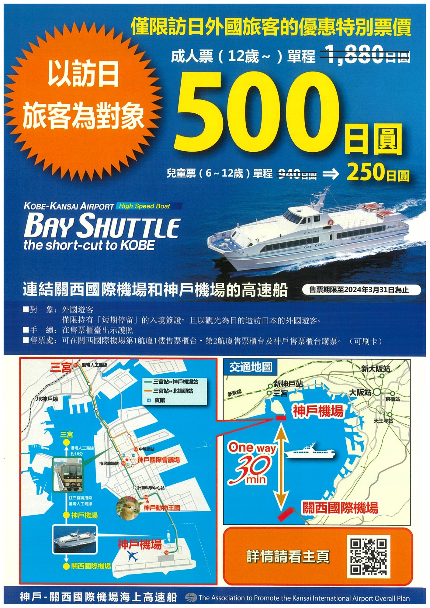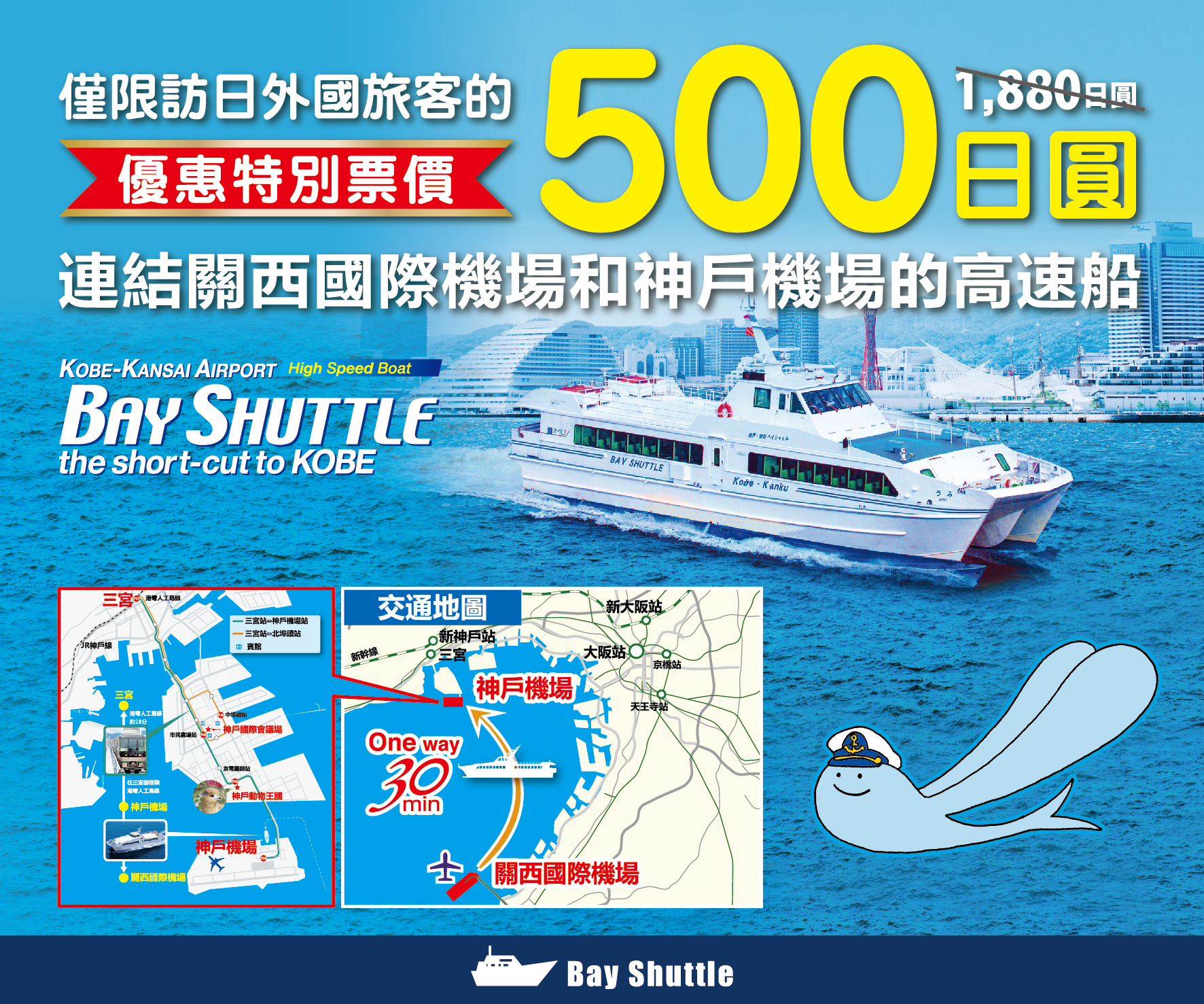 搭神戶高速船(Bay Shuttle)從關西機場往神戶最便宜的交通
