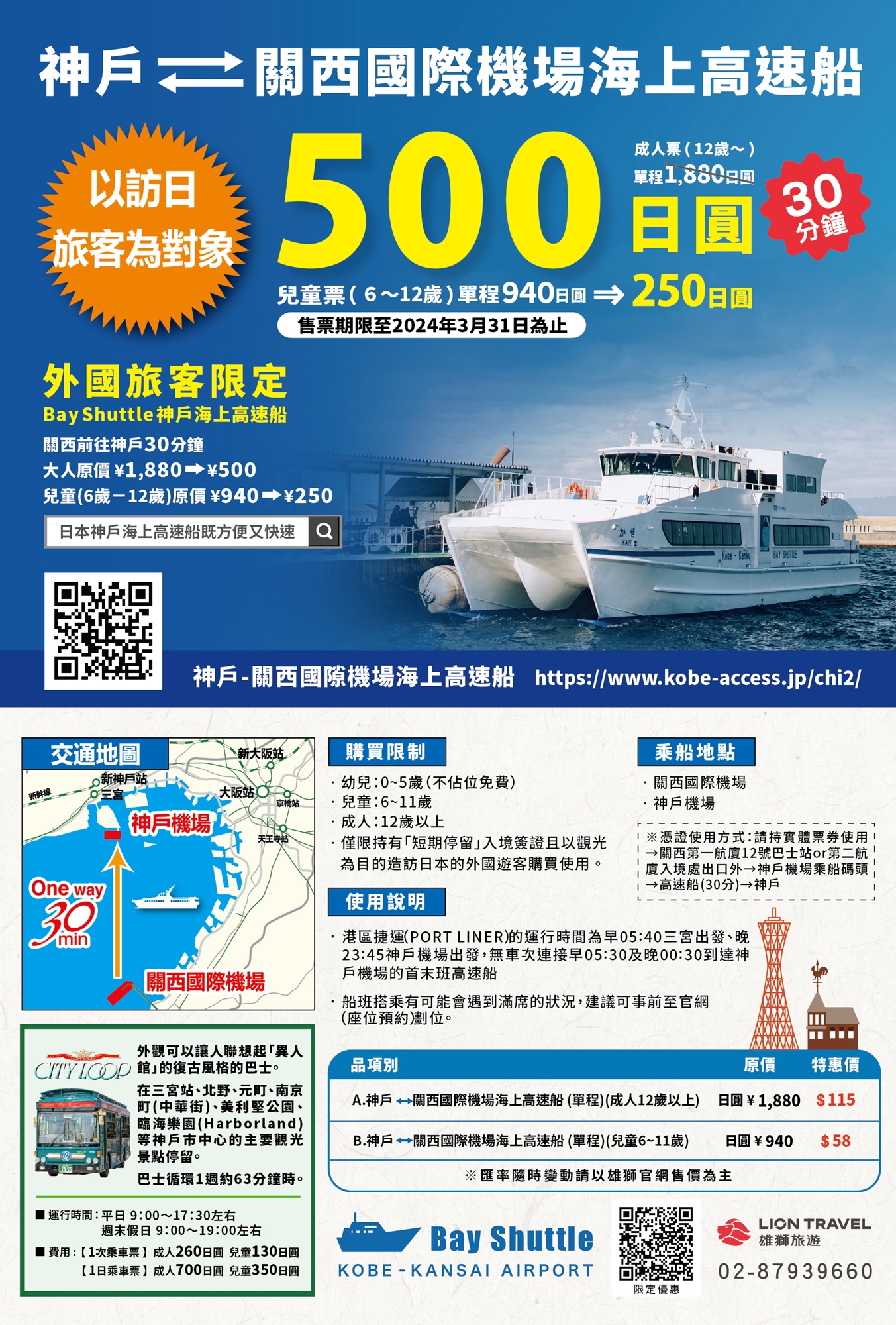 🎯神戶-關西機場海上高速船|雄獅旅遊
