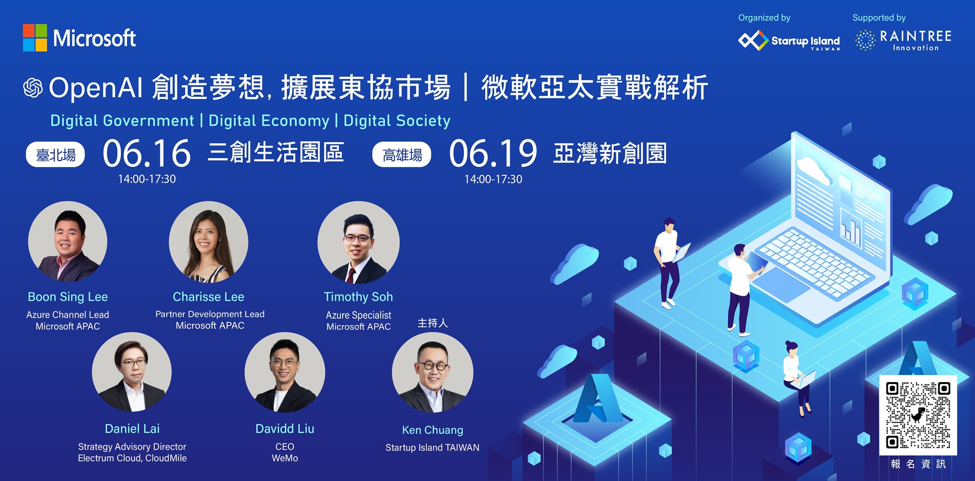 Microsoft帶你用「OpenAI 創造夢想,擴展東協市場」! 實體講座將在06.16 (五)、06.19 (一) 正式舉辦。活動完全免費,機會難得,快來報名!▶️▶️▶️