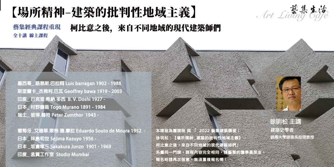 藝集經典課程重現| 徐明松 : 【場所精神_建築的批判性地域主義】 - 柯比意之後,來自不同地域的現代建築師們 _ 全十講 (線上課程)