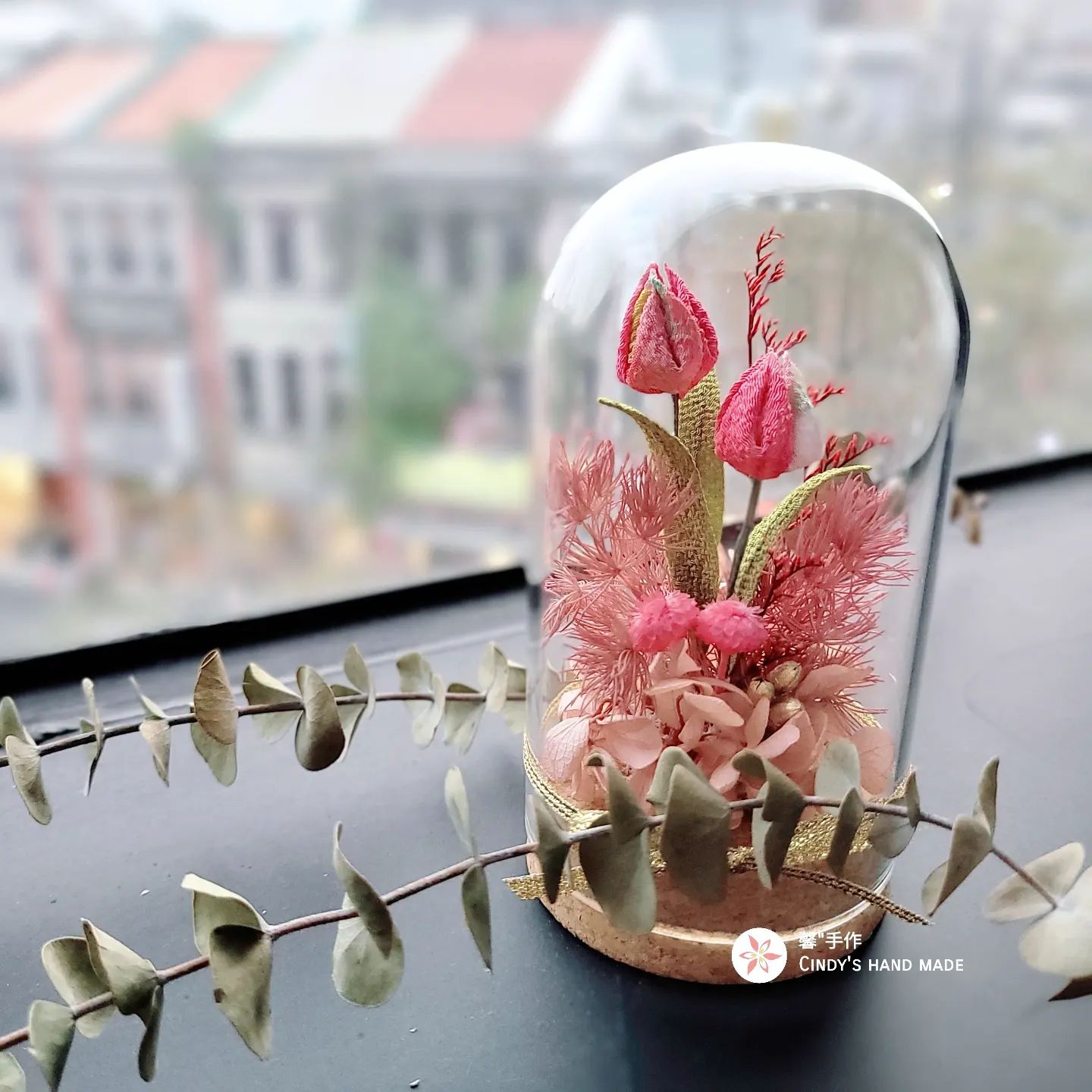 我們將學習用つまみ細工技法製作和風迷你鬱金香花,結合不凋永生花製作成鐘罩擺件,自已動手作送禮自用浪漫又療癒。