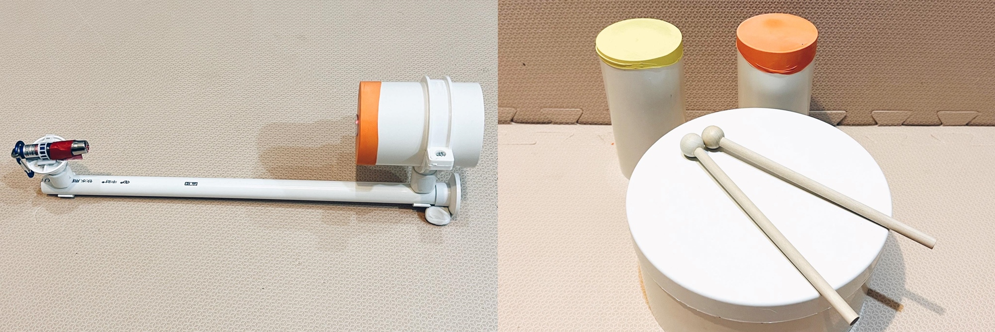 大小聲親子探索工作坊主要任務在於啟發小朋友動手做,並透過動手做來學習與解決問題,在探索工作坊裡依5-8歲孩童的興趣規劃二個手作主題,主題1嗯啊嗯啊聲波器、主題2懂噠懂噠自造鼓。這二個主題課程皆使用生活隨處可見的水管作為探索材料,課程設計是為了讓小朋友學習運用生活中隨處可見的素材動手發揮創意,並從中學習科學原理與物理現象的運作,以好玩有趣、動手做的教學方式,讓孩童愛上動手做及做中學的樂趣。