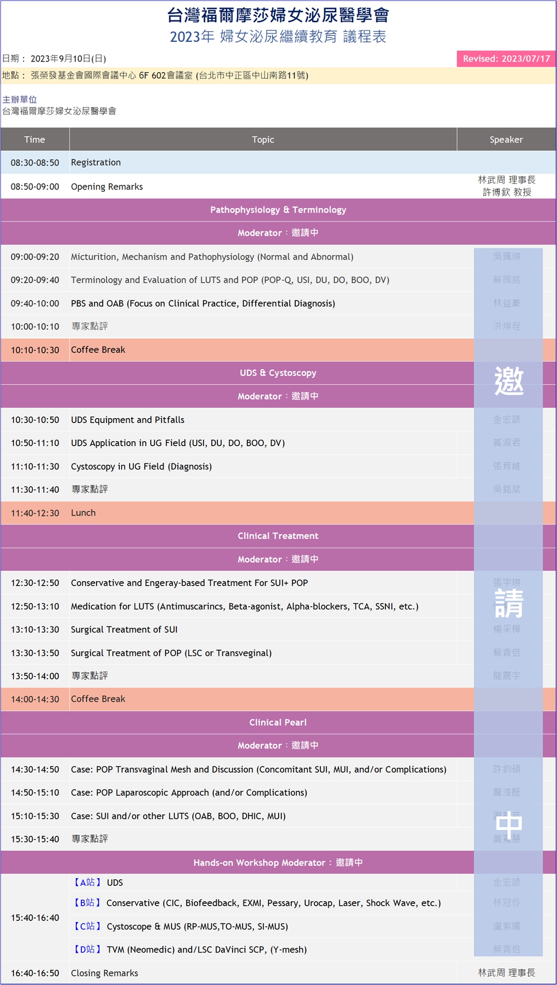 ·『台灣福爾摩莎婦女泌尿醫學會』會員免費,須繳清常年會費