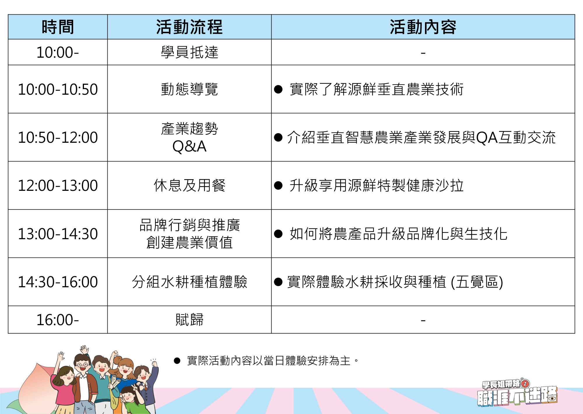 - 活動皆全程免費,並提供餐食、保險及接駁。