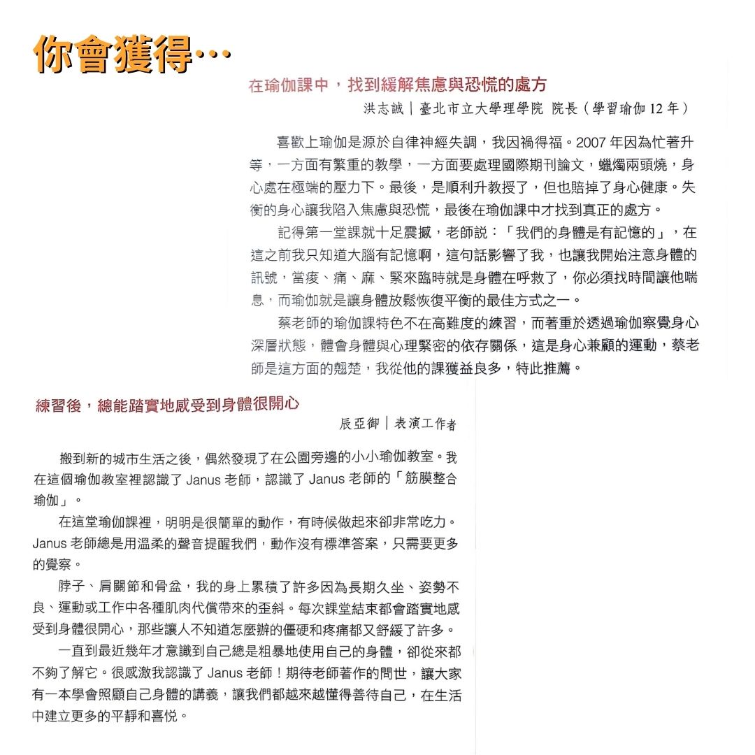 著有《瑜伽療癒的身心復健科學》及《筋膜X瑜伽訓練全書》