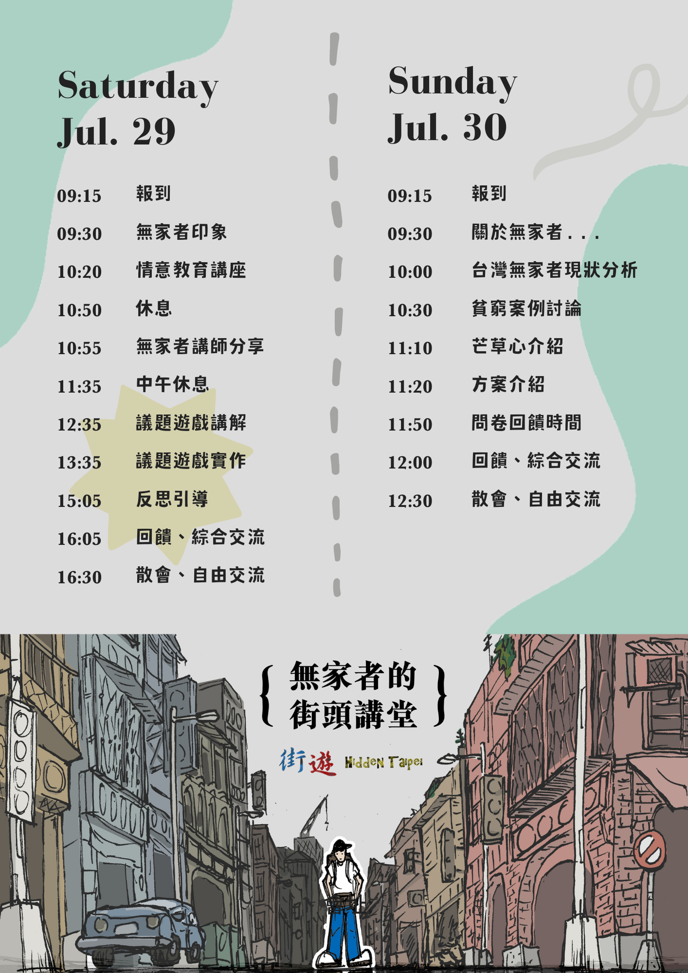 內容:議題遊戲、無家者真人圖書館、教學手冊介紹、貧窮案例介紹、免費獲得教學教材包