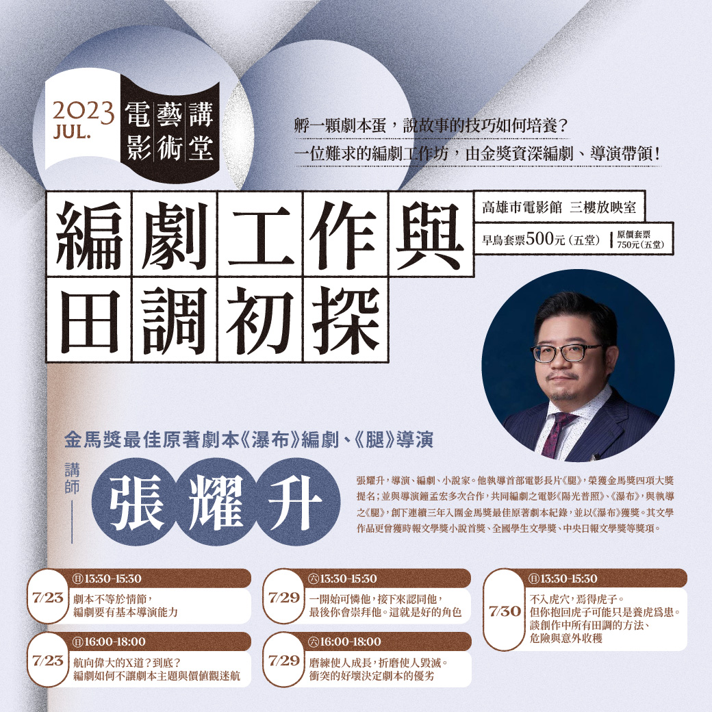 ✨ 講師陣容邀請到 金馬獎最佳原著劇本《瀑布》編劇 張耀升