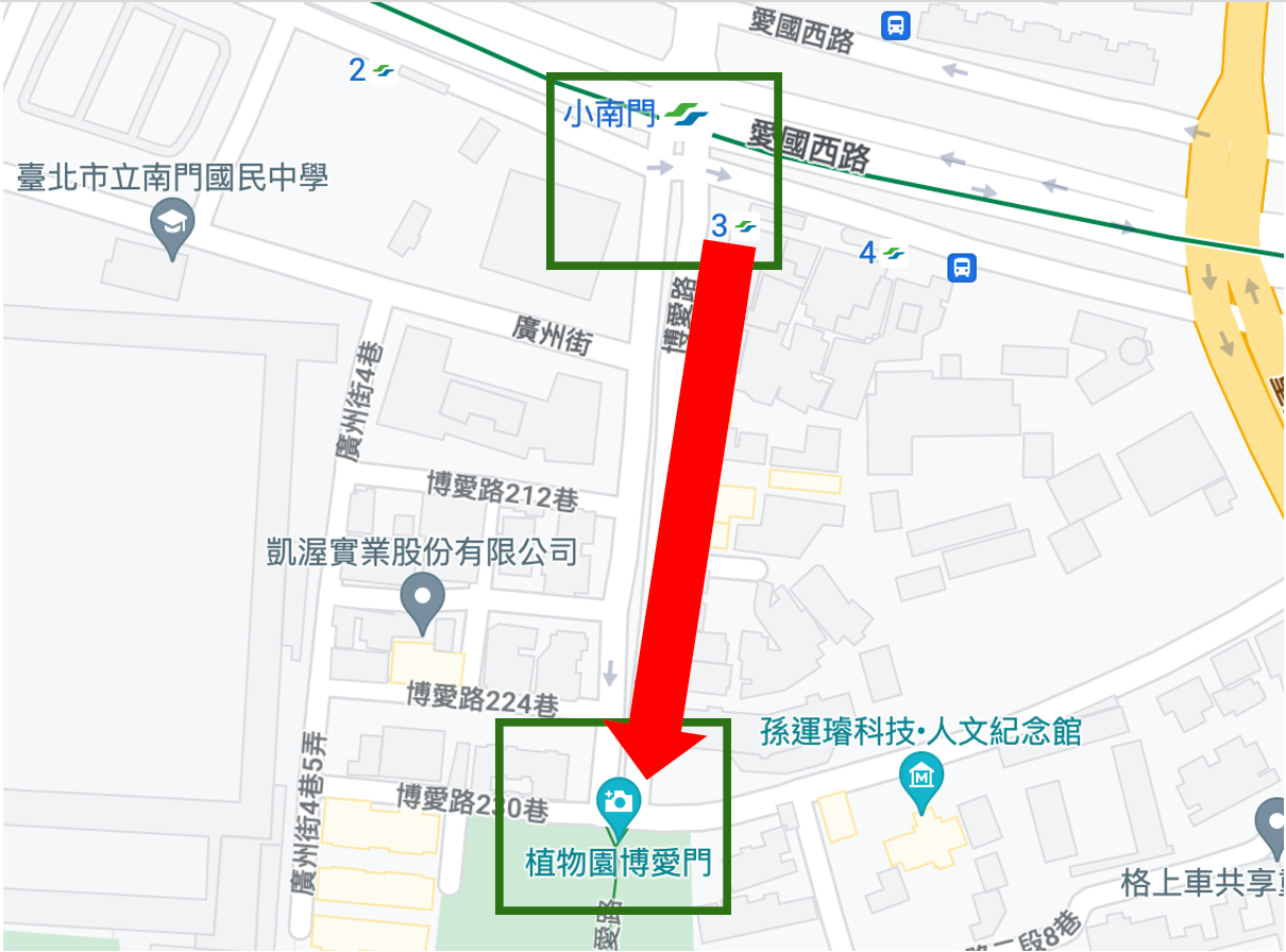 捷運小南門站3號出口至博愛路,直直走到底就到囉~