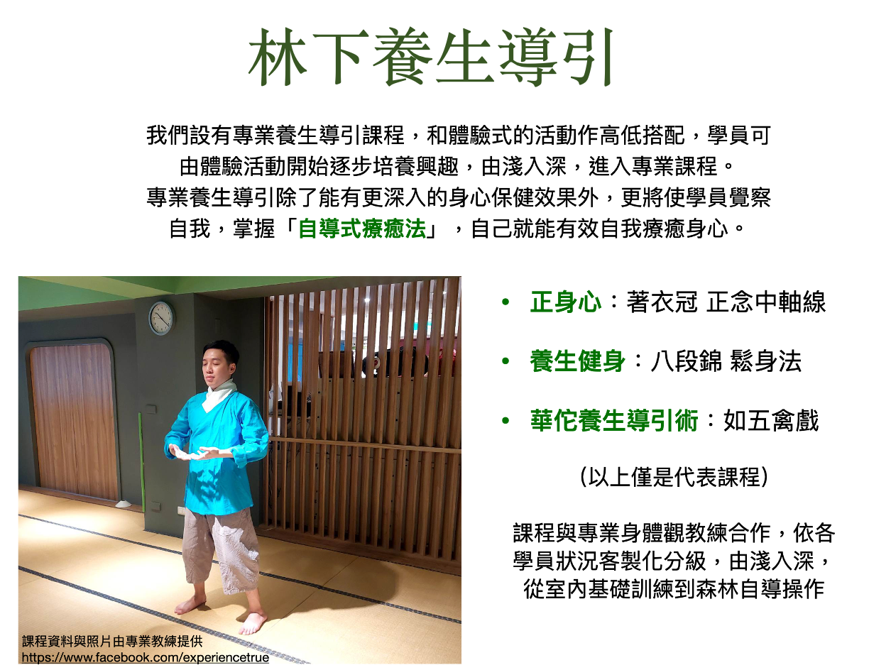 山林療☯癒是全台首創,結合「森林療癒」與「養生導引術」之專屬品牌。