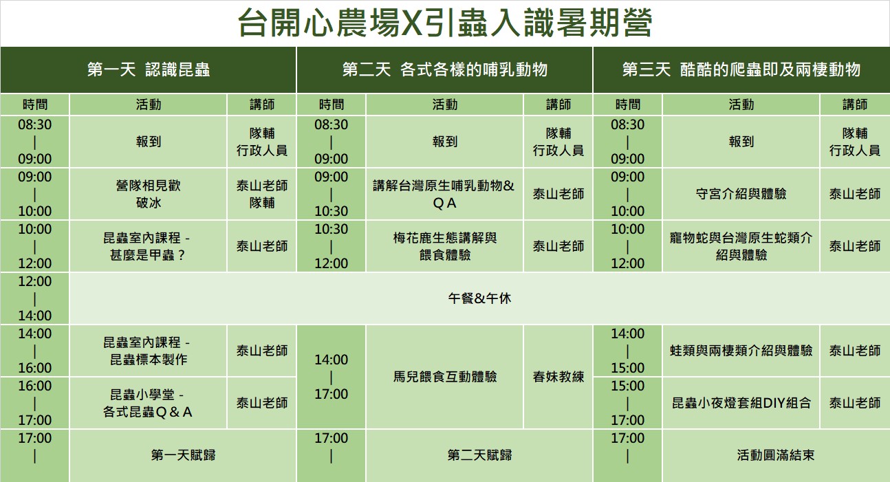 引蟲入識暑期營:8/9~8/11