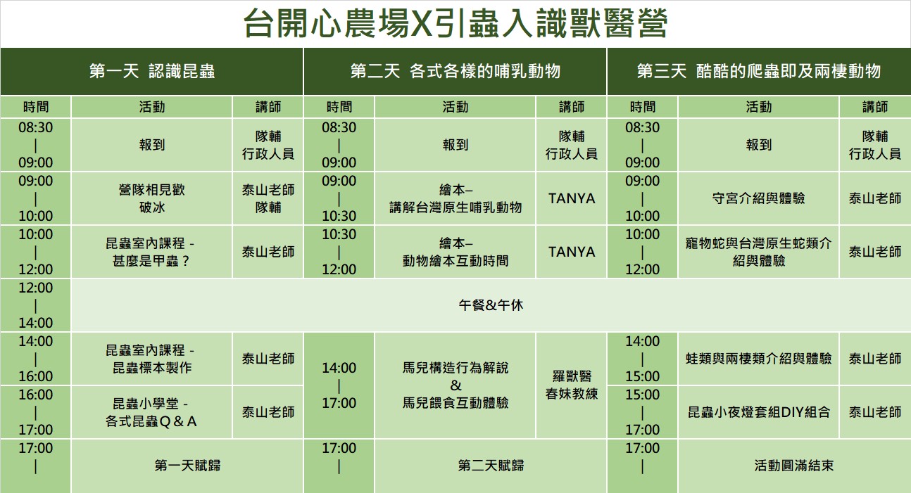 引蟲入識獸醫營:7/21-7/23