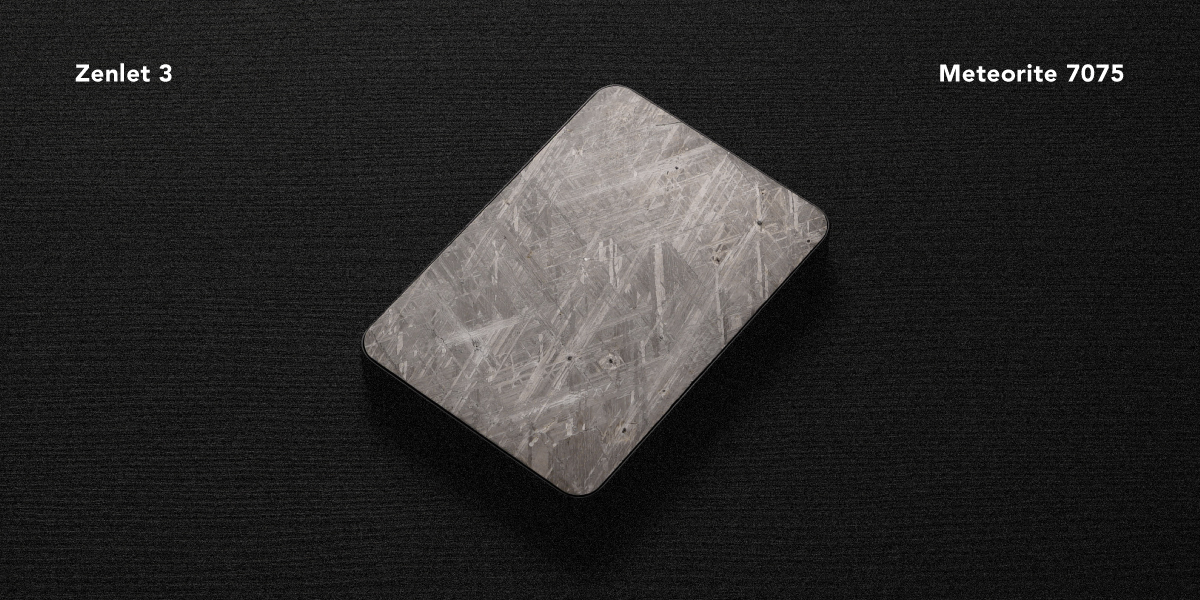 ∆ Zenlet 3 Meteorite 7075:以完整隕石切割成稀有的片狀尺寸,並結合最高強度 7075 鋁合金,極限量釋出,每一份隨附金屬材質隕石證書,增加典藏價值與意義。