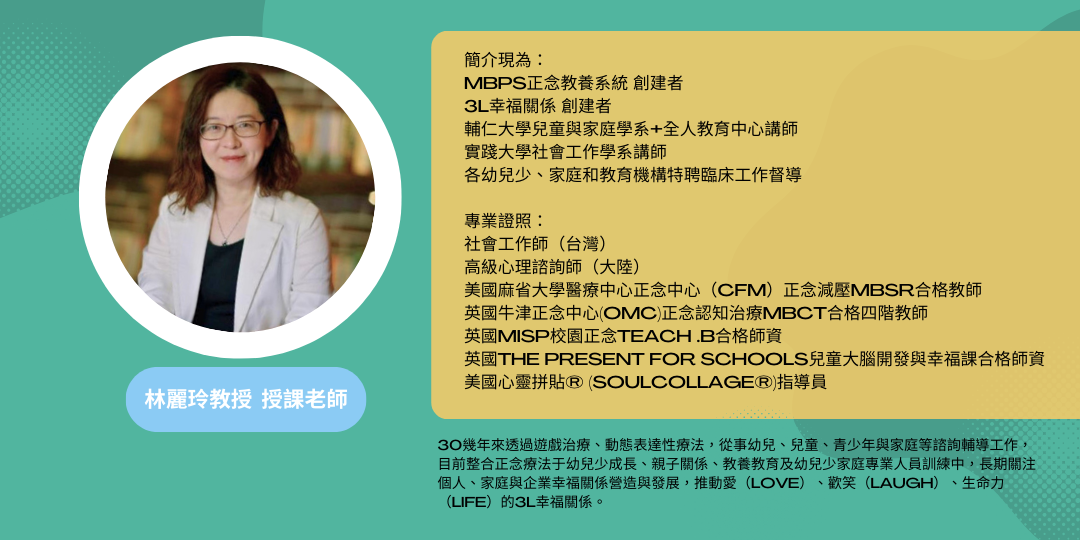麗玲教授以當代正念為內核,融合積極與發展心理學及家庭系統的視野,並融入遊戲治療、表達性藝術治療和心理劇等動態助人法,創建了“MBPS正念教養系統(Mindfulness-Based Parenting System)”。