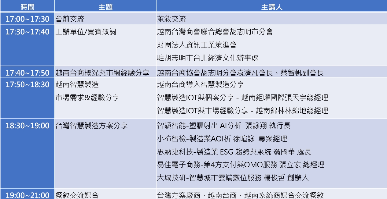 ■主辦單位:越南台灣商會聯合總會胡志明市分會、財團法人資訊工業策進會