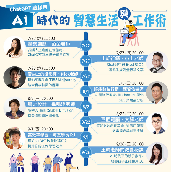 • 講座以直播方式進行,讓同學在安靜舒適的環境上線,將會於上課前1小時使用電子信箱寄出上課連結。