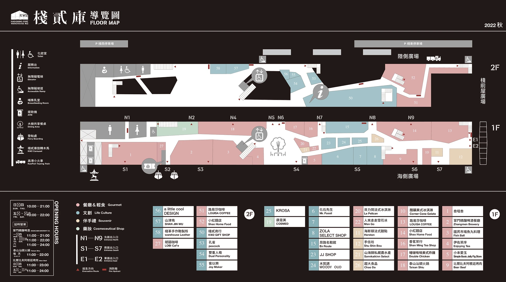 棧貳庫KW2 導覽圖 ✱報到地點 棧貳庫KW2 南面出入口S2(S2門內走道,下圖編號2及編號27商店間走廊)