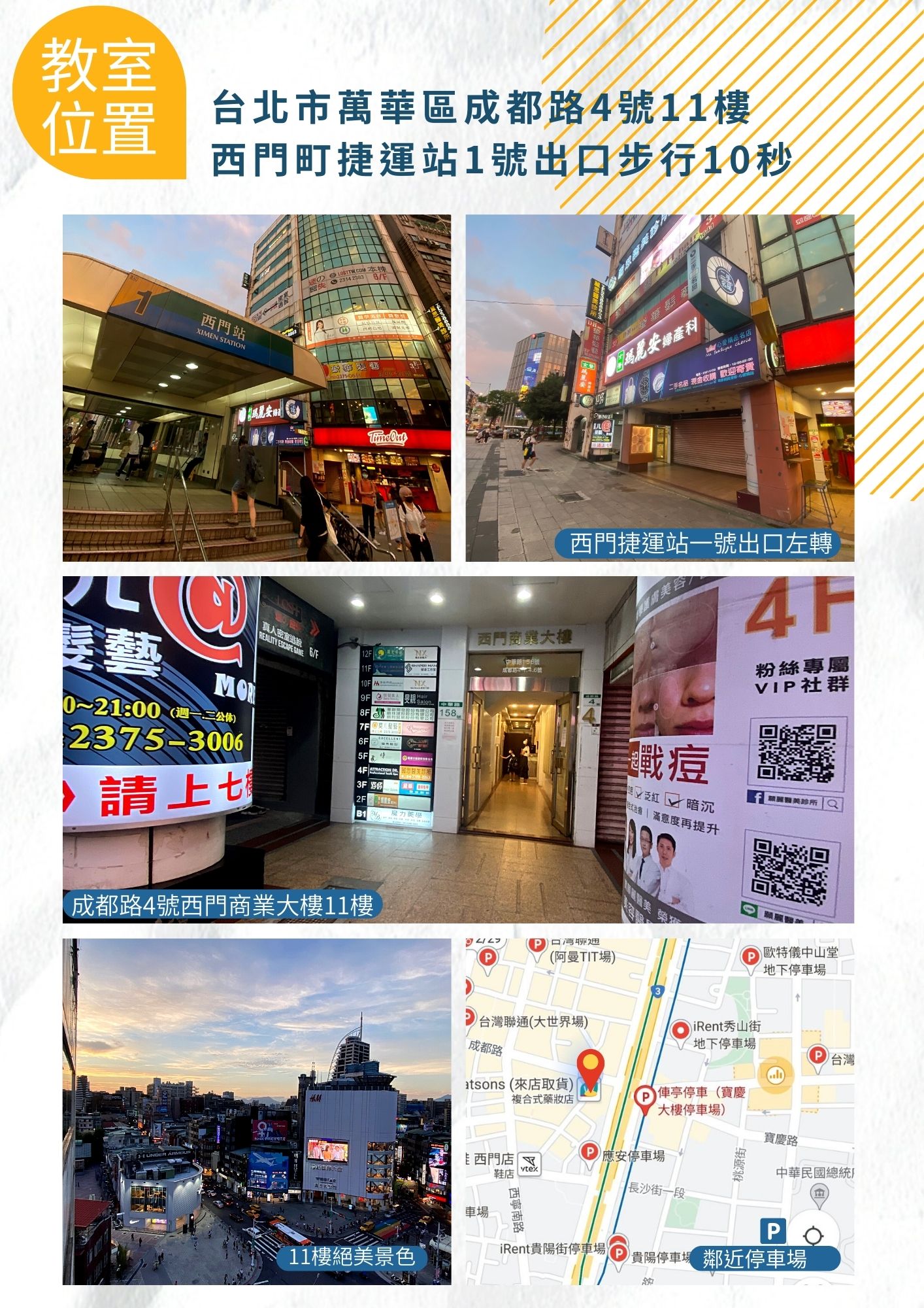 - 課程地點:Active girl運動空間 - 台北市萬華區成都路4號11樓 (捷運西門站1號出口步行約10秒)