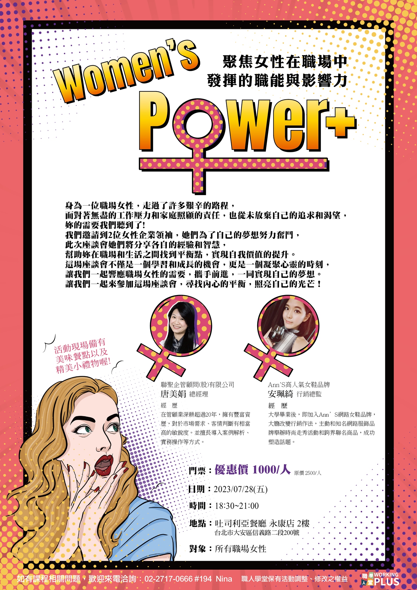 我們邀請到2位女性企業領袖,她們為了自己的夢想努力奮鬥,此次座談會她們將分享各自的經驗和智慧,幫助妳在職場和生活之間找到平衡點,實現自我價值的提升。