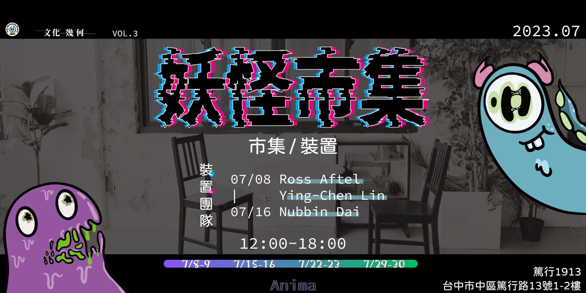 7/8-9、7/15-16 於演出場地亦有〖文化幾何,妖怪市集〗,歡迎參觀與聲光作品交錯的藝文市集活動。