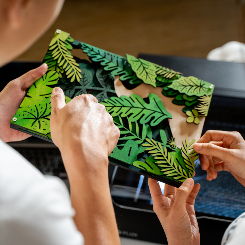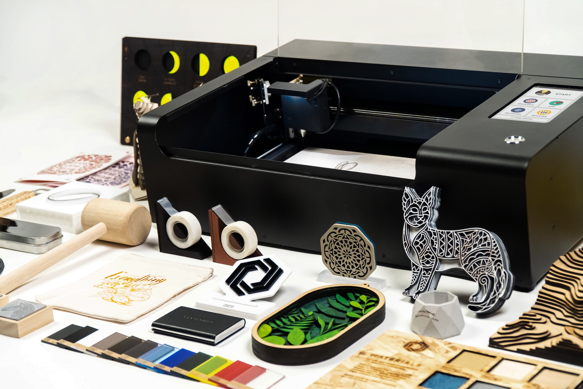 FLUX 雷射雕刻機小小一台機器即可支援多樣的材質創作,簡單輕巧且直覺的工作流程,讓您即便在繁忙的辦公生活中,仍可以持續產出您的創作。結合 AI 技術與 Design Market 數位檔案平台,讓你輕鬆接案、輕鬆製圖、輕鬆雷雕創作!