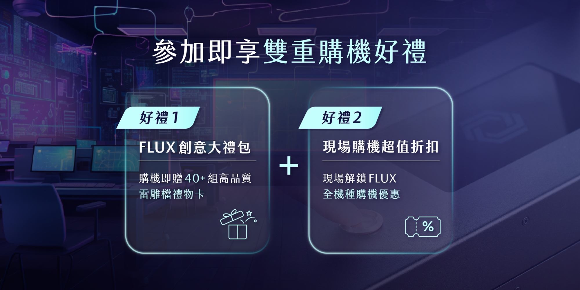 FLUX 將複雜的雷射切割技術與生成式 AI 結合,提供你簡易上手的好用機器,並帶你實戰演練,現場雷雕、繪製專屬於你的作品,讓你有機會讓創意變成生意!