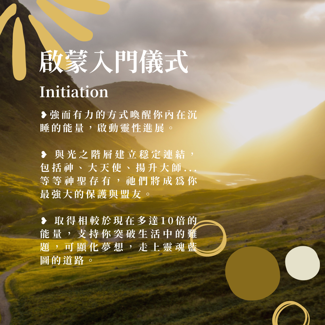 透過啟蒙入門,將帶領你踏上靈性成長的道路,開始探索真我(True Self)與負面小我的不同,並教導正確的知識及持守能量的方法。使你開始穩定自己,為自己的生命及靈性進展努力,走上療癒內在的道路。